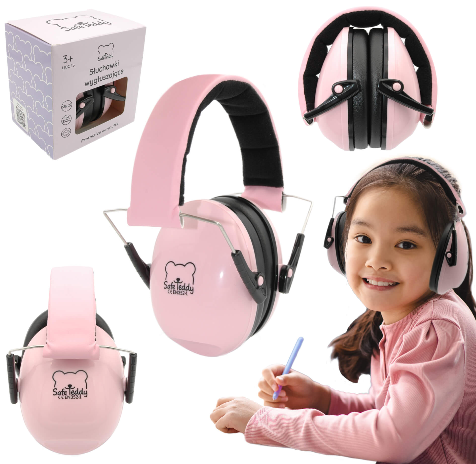 Słuchawki ochronne nauszniki wygłuszające dzieci 3lata+ różowy SafeTeddy